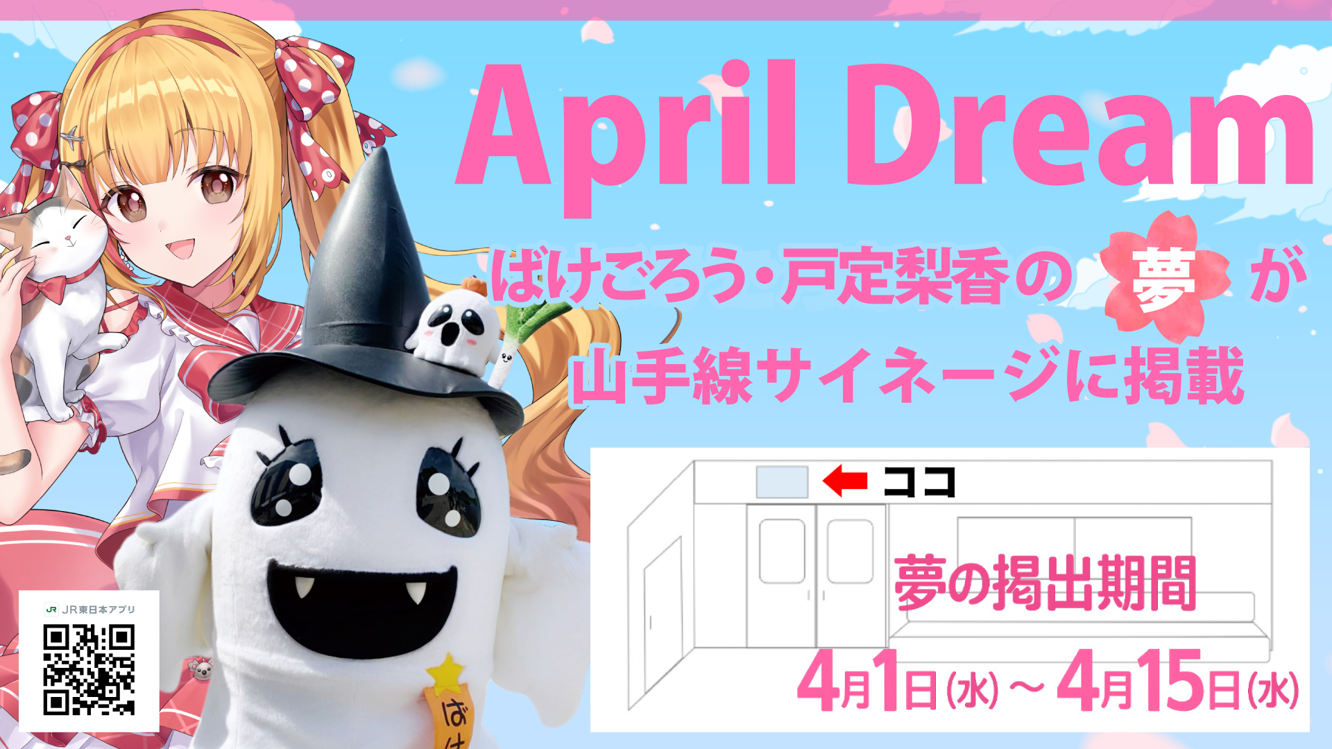 山手線を舞台に、夢が走る!戸定梨香&ばけごろうがサイネージ掲出開始