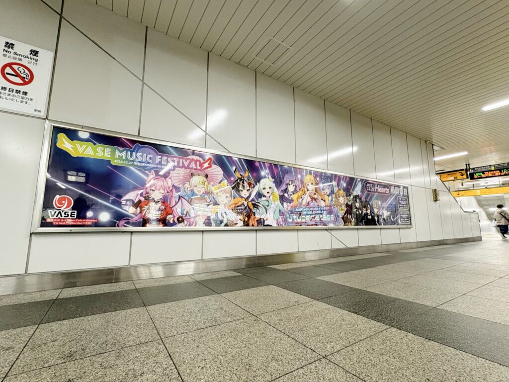 JR秋葉原駅構内にて、「VASEリアルライブプロジェクト ~夢の続きを形にしたい~」の超大型広告を掲出しております。